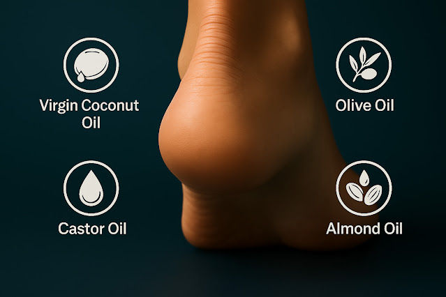 🌰 Castor Oil | 💦 Softens thick, hard skin | 🌙 Massage deeply at night |